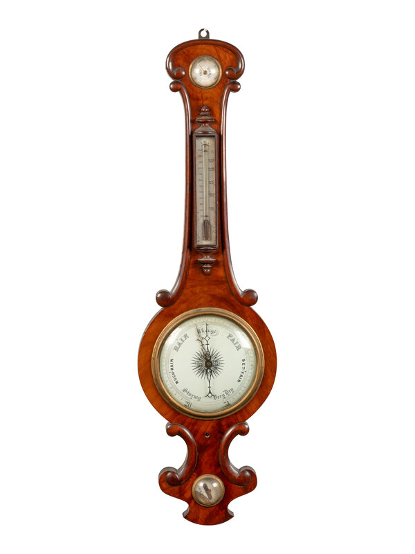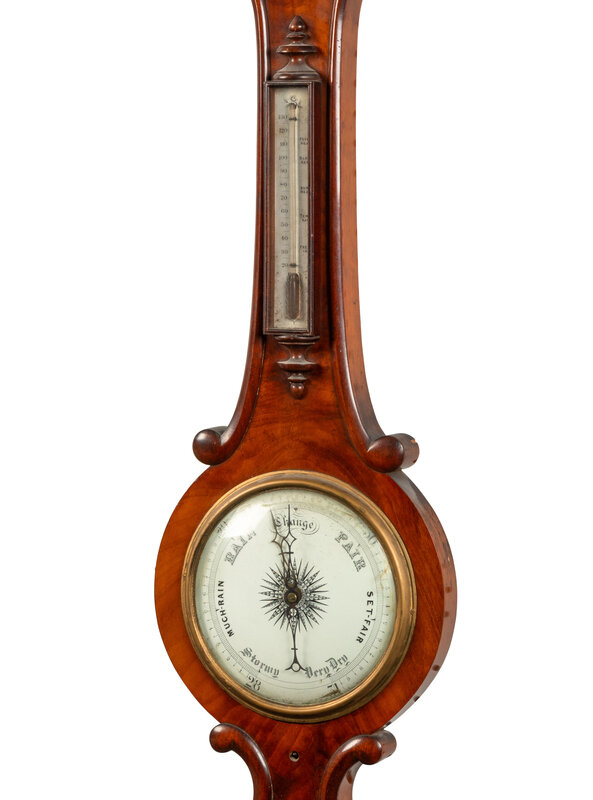 An English Mahogany Wheel Barometer and Thermometer