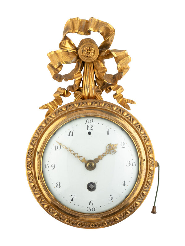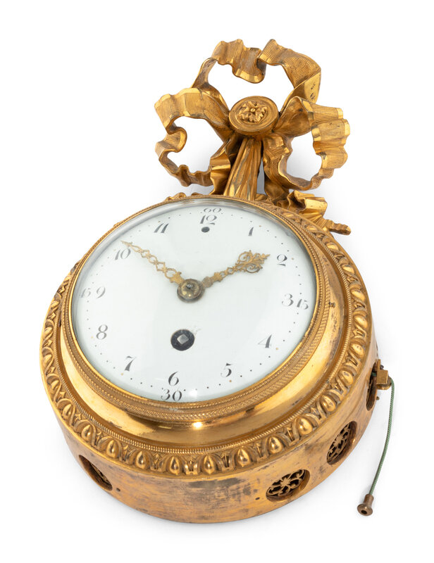 The interior is etched Hardel À Paris. Includes winding key and pendulum. With pull repeat mechanism, striking one bell.