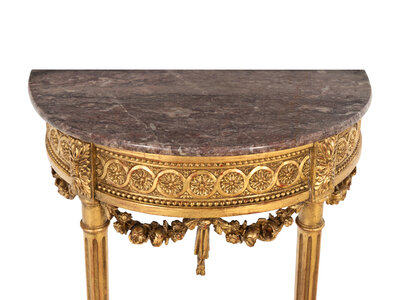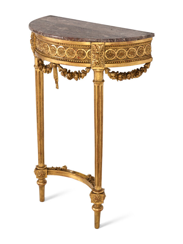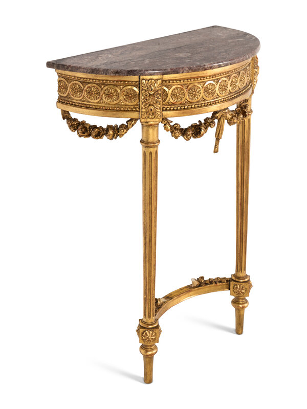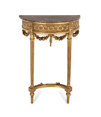 A Louis XVI Style Giltwood Marble-Top Console Table