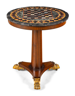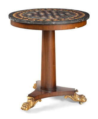 An Empire Style Parcel Gilt Pietra Dura Table