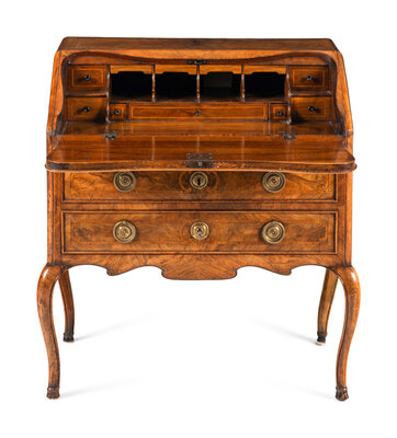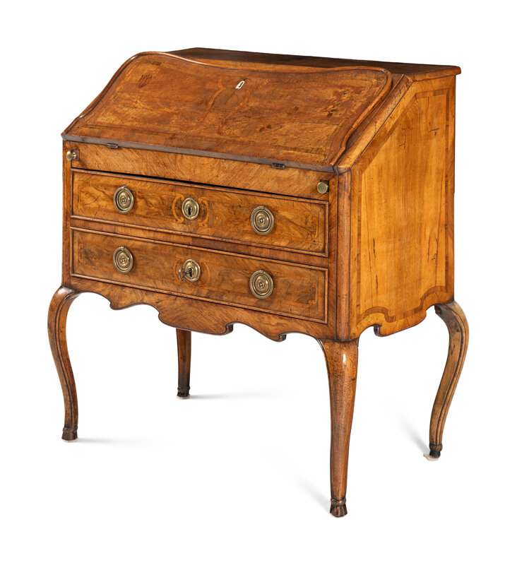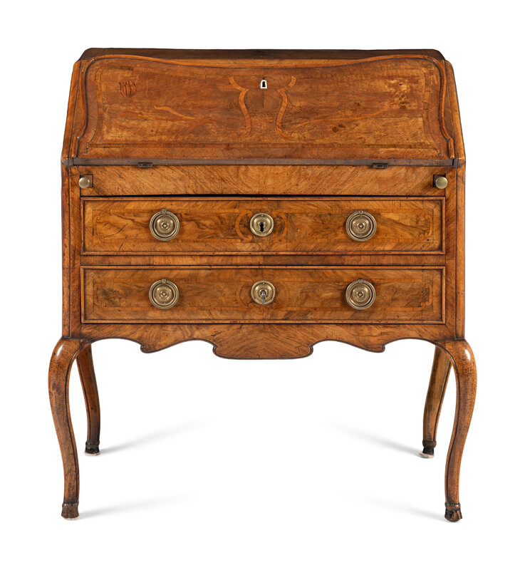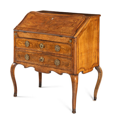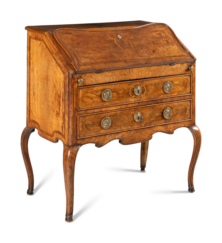 An Italian Walnut and Marquetry Slant-Front Bureau