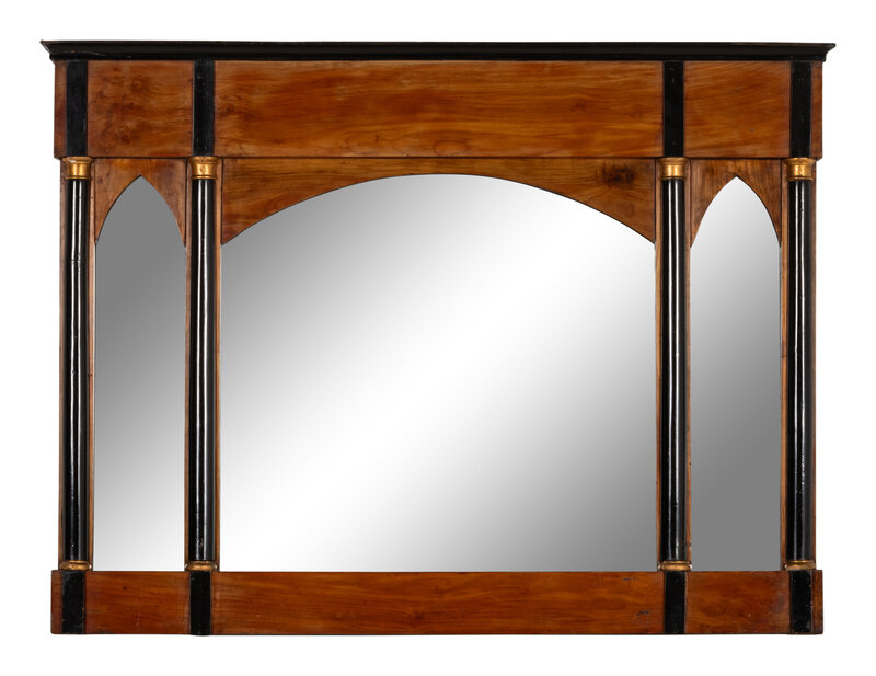 A Continental Part-Ebonized Walnut Overmantel Mirror