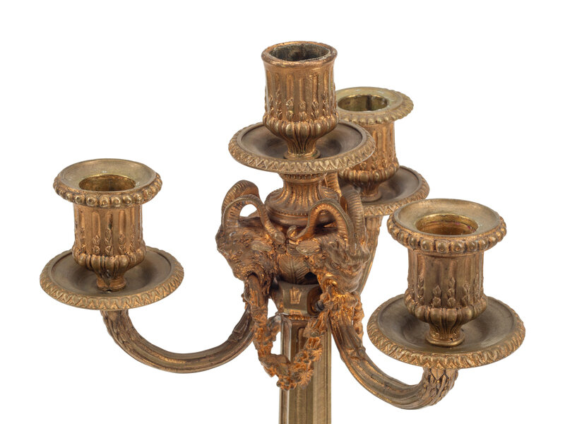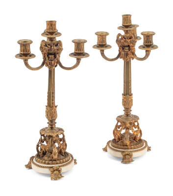 A Pair of Continental Gilt Bronze and Marble Candlesticks