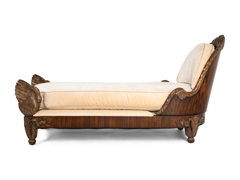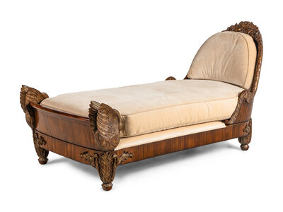 A Maitland-Smith Empire Style Walnut and Parcel Gilt Daybed