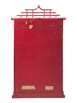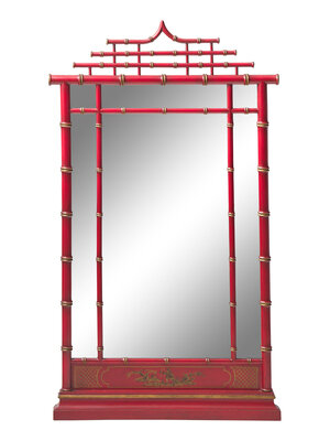 An Chapman Mfg. Co. Chinoiserie Red-Painted and Parcel-Gilt Faux Bamboo Mirror