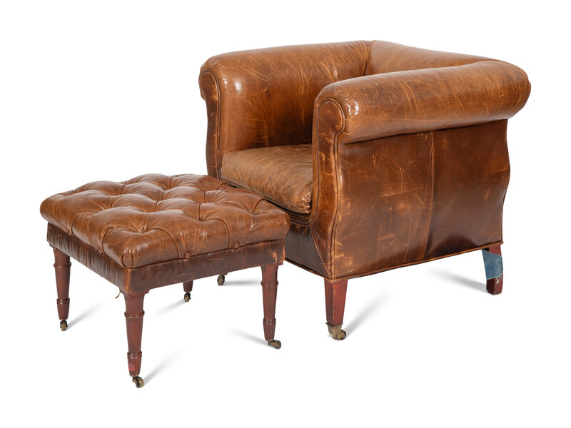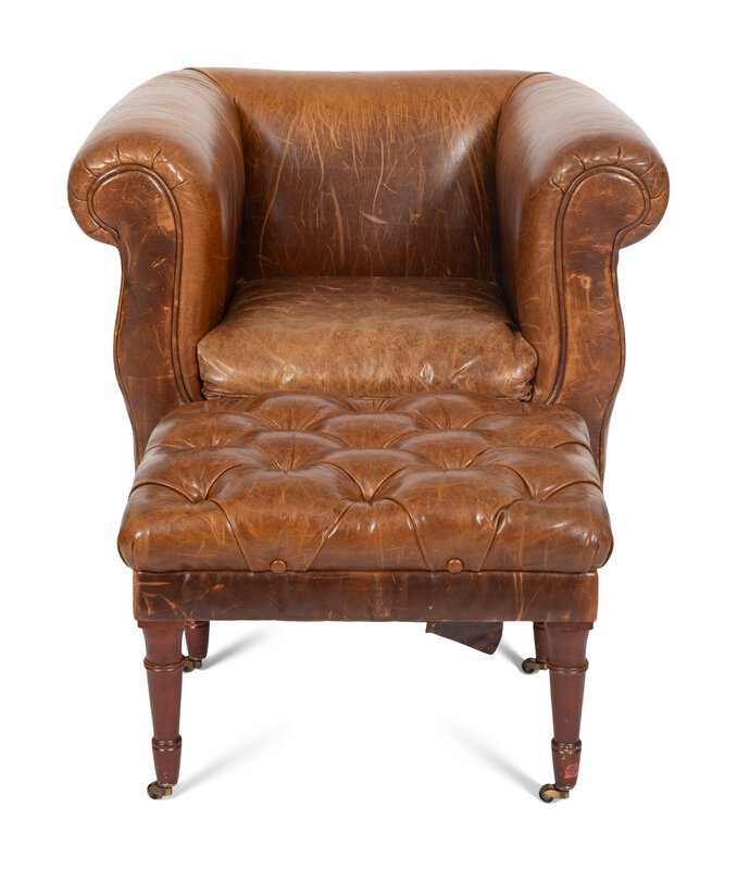 A Vanguard Furniture Leather Lounge Chair and Button Tufted Ottoman