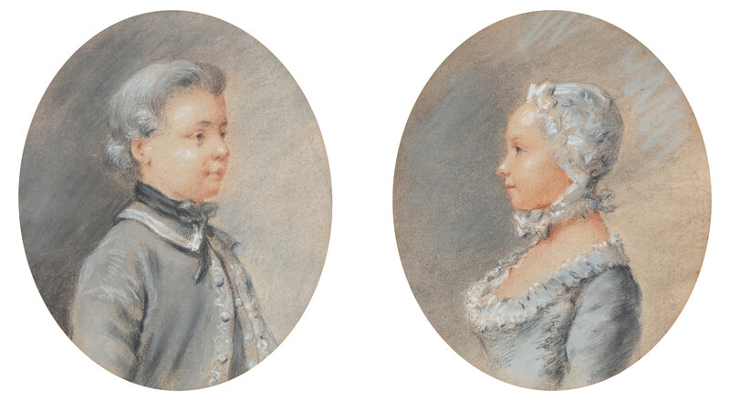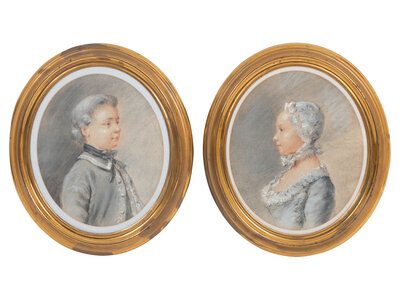 depicting Jean-Rene Guerin de Foncin enfant epouse a Eleonore Tulchironpere de Jean Froncois and Francoise Claludine fille de Jean Rene de Foncin et Francoise Imbert nee a Lyon 10 Sept. 1743 decedee a Ruelles, Rhone vers 1780 (identified by label on verso of each.)