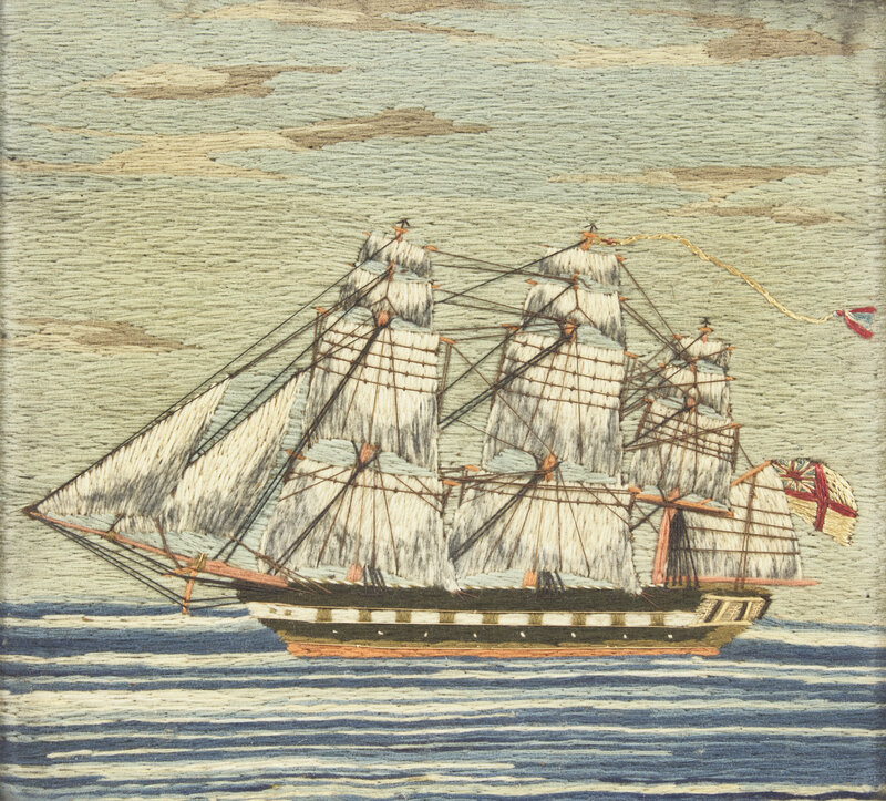 An English Embroidered "Woolie" Depicting the H.M.S. Doris, Dated "1874 / 1876"