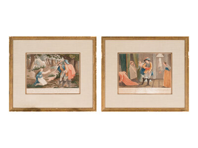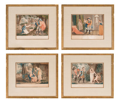 A Set of Four French Hand-Colored Engravings in Giltwood Frames
