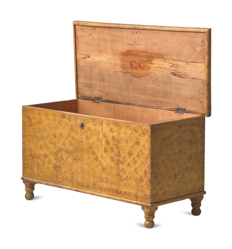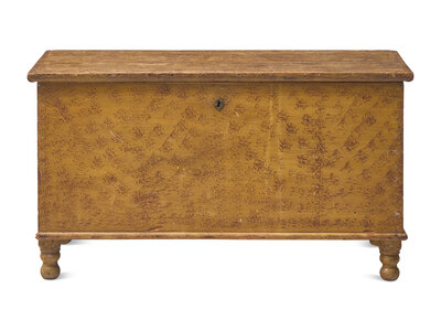 An American Small Sponge-Decorated and Yellow-Painted Wood Blanket Chest