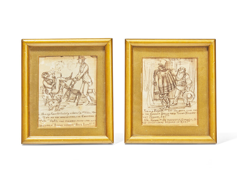 English School 19th Century, Two Satirical Ink Drawings