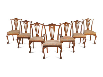 A Set of Seven George III Style Walnut Dining Chairs