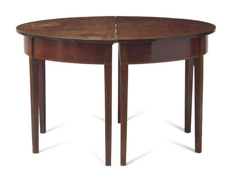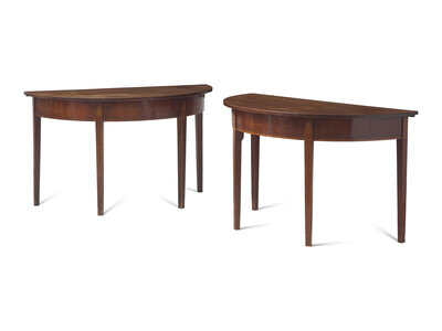 A Pair of George III Inlaid Mahogany Demilune Tables