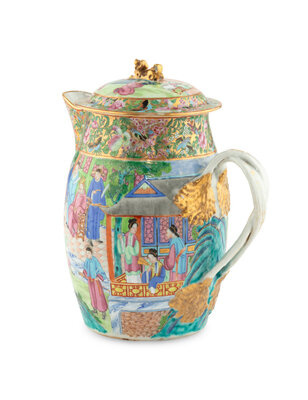 A Large Chinese Export Rose Medallion Porcelain Pitcher