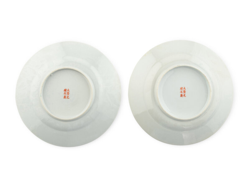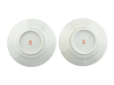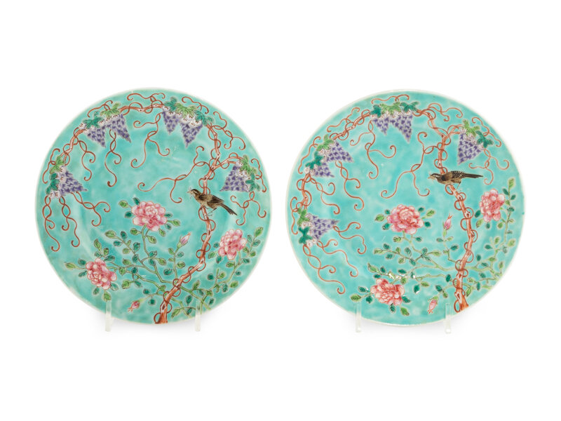 A Pair of Chinese Turquoise Glazed Famille Rose Porcelain Dishes