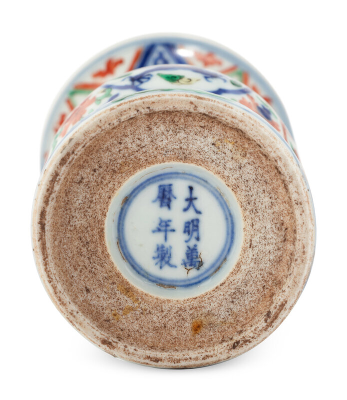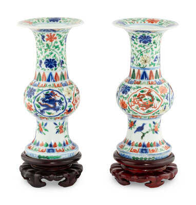 A Pair of Chinese Wucai Porcleain Gu Vases