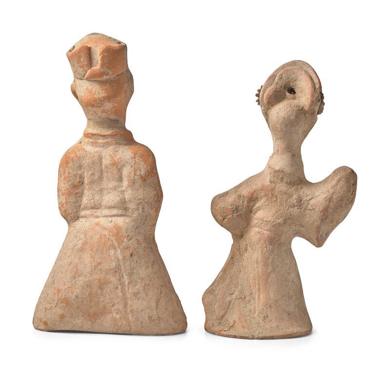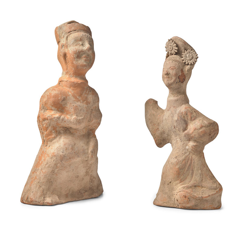 Two Large Chinese Sichuan Pottery Figures of Entertainers