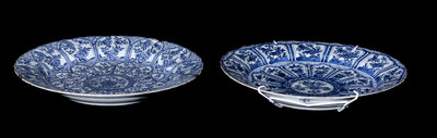 Two Chinese Export Blue and White Porcelain Chargers
