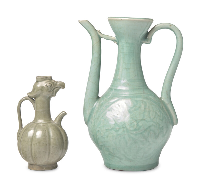A Chinese Celadon Bird Headed Ewer and a Longquan Type Celadon Ewer
