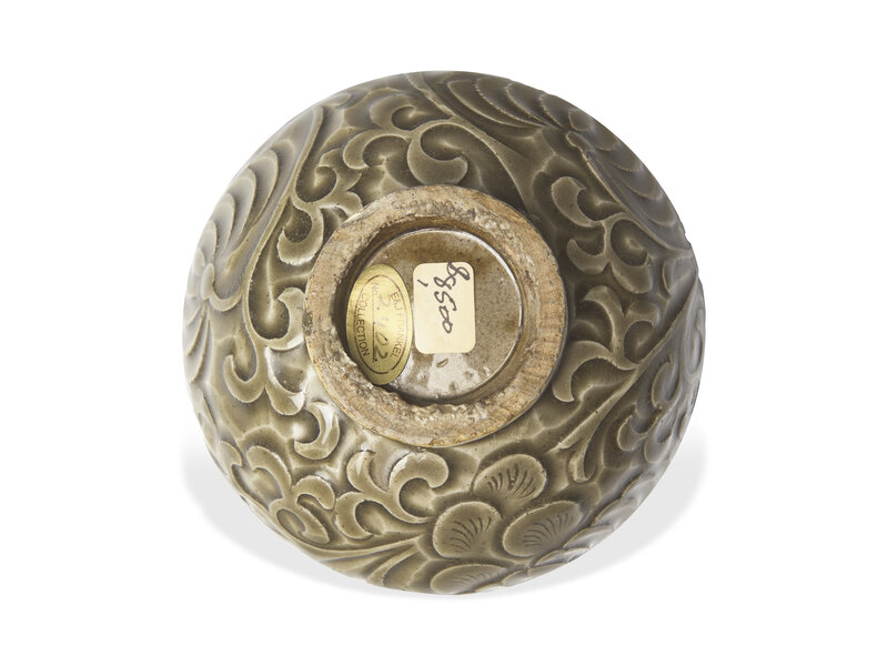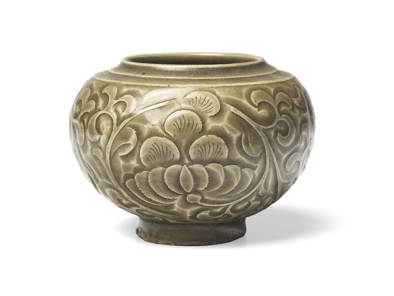 the ovoid jar carved with floral scrolls.