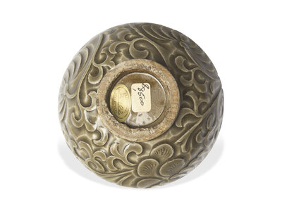 A Small Chinese Yaozhou Style Carved Celadon Jar