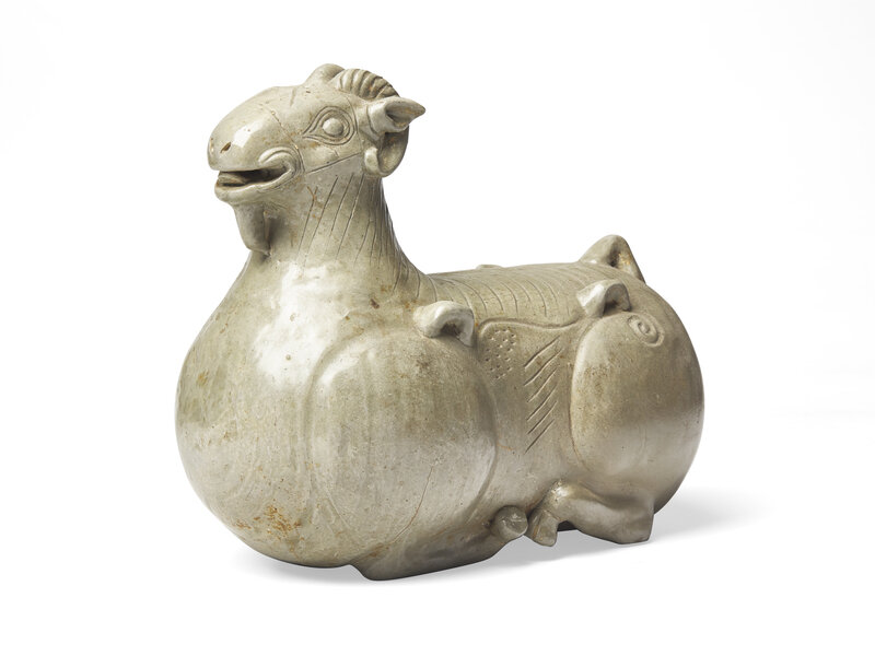 A Chinese Yueyao Style Celadon Glazed Reclining Ram
