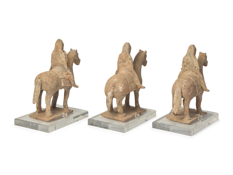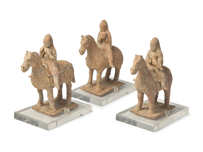 Three Chinese Pottery Equestrian Musician Figures