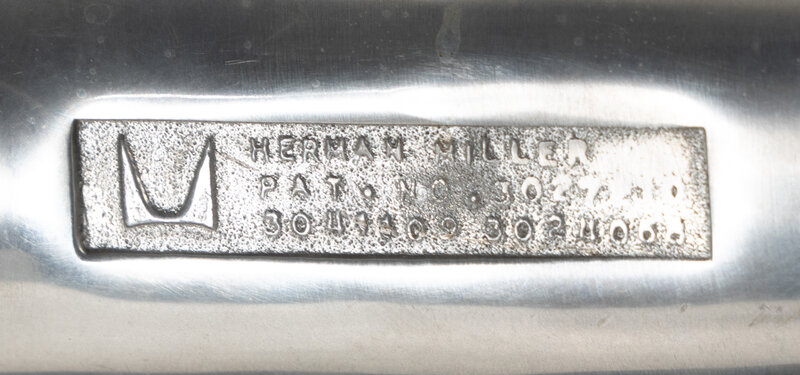 Herman Miller stamp on underside of frame; original paper label on underside of seat (delivery date 6635).