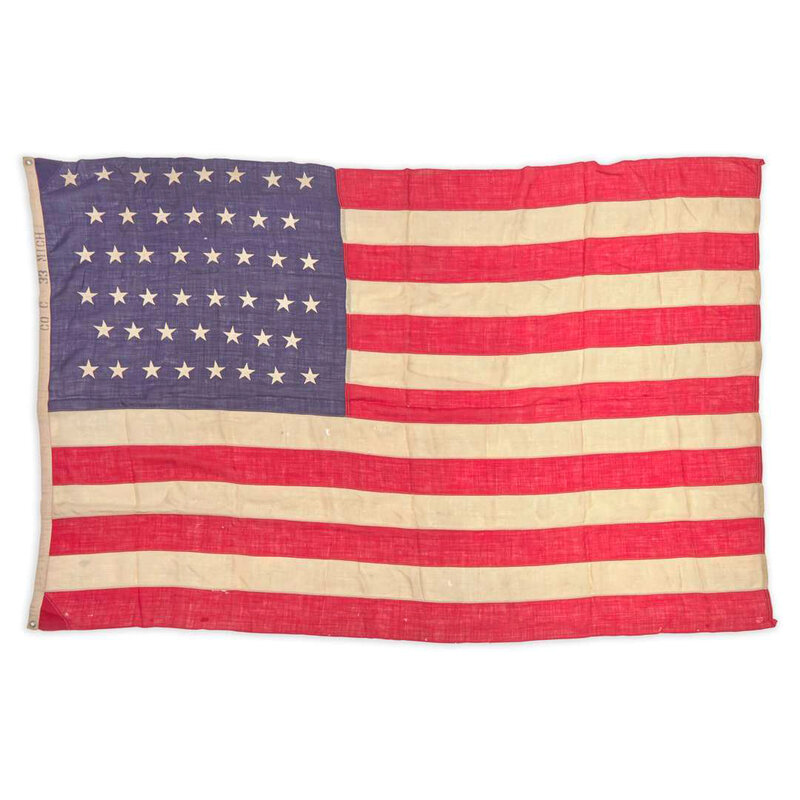 [FLAGS]. 46-star American flag used by Company C, 33rd Michigan Volunteer Infantry Regiment. 1908-1912.