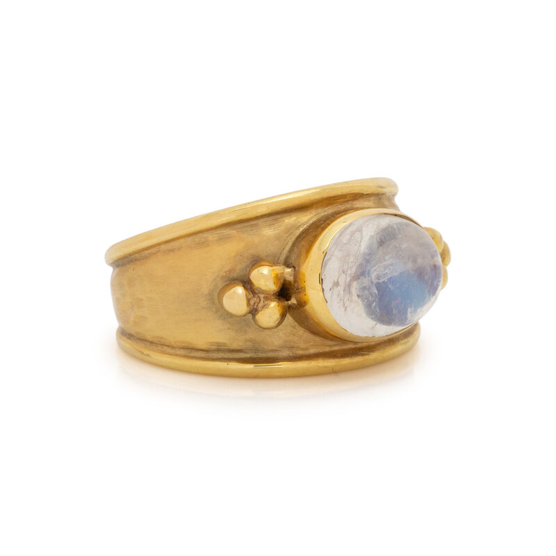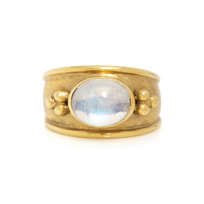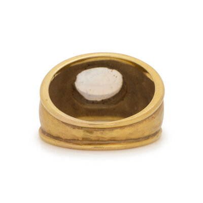 YELLOW GOLD AND MOONSTONE PENDANT/BROOCH AND RING