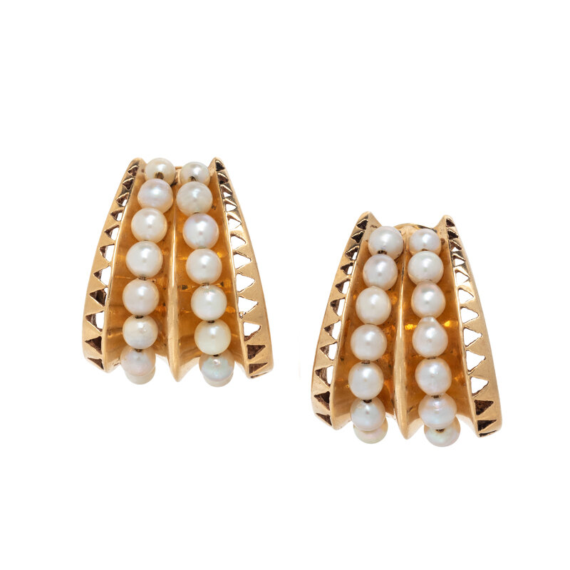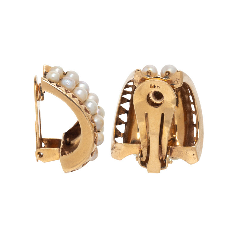 CULTURED PEARL AND YELLOW GOLD CLIP EARRINGS