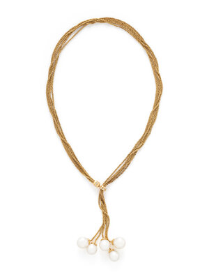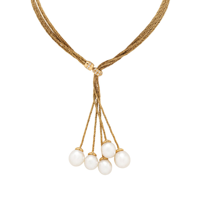 YELLOW GOLD AND CULTURED PEARL MULTISTRAND LARIAT NECKLACE