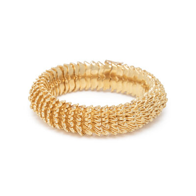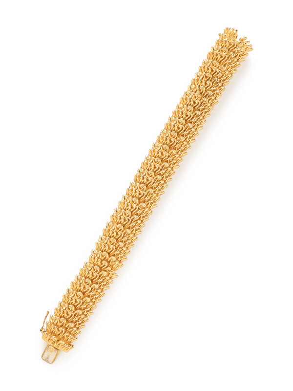 18 karat yellow gold. 7 1/4 inches long, 5/8 inch wide.