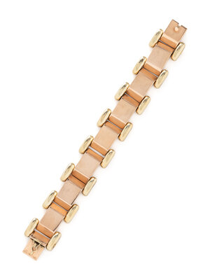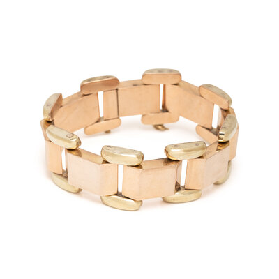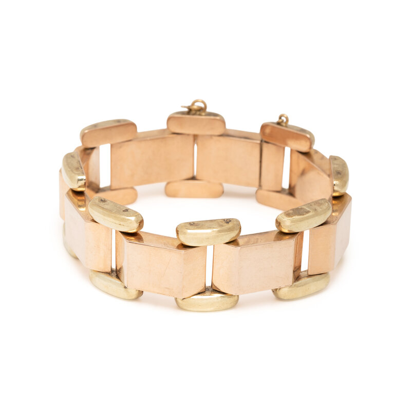 14 karat yellow and rose gold. 7 inches long, 7/8 inch wide.