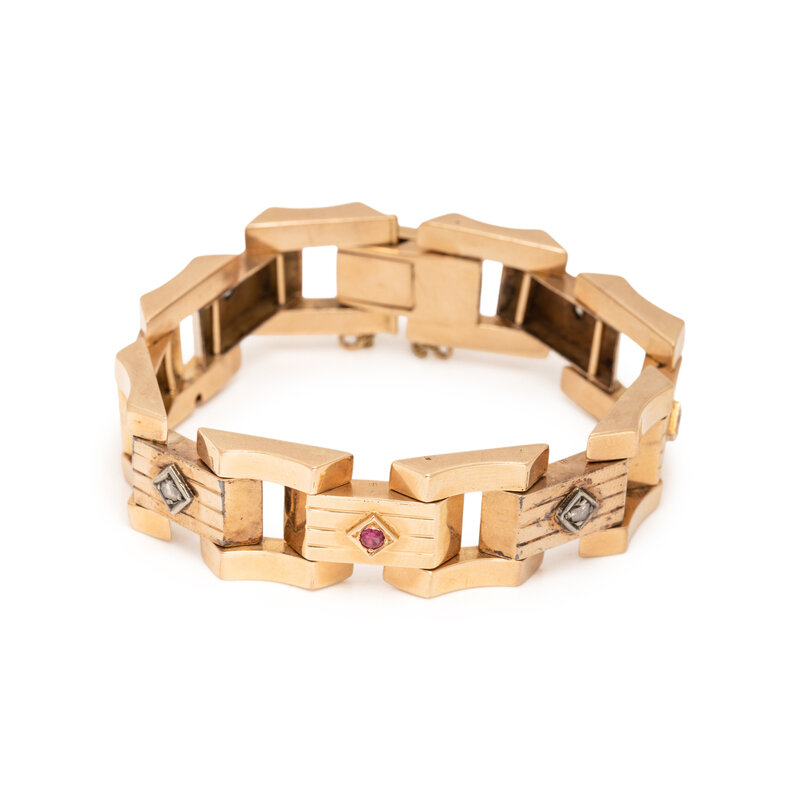 RETRO, ROSE GOLD AND SYNTHETIC RUBY BRACELET