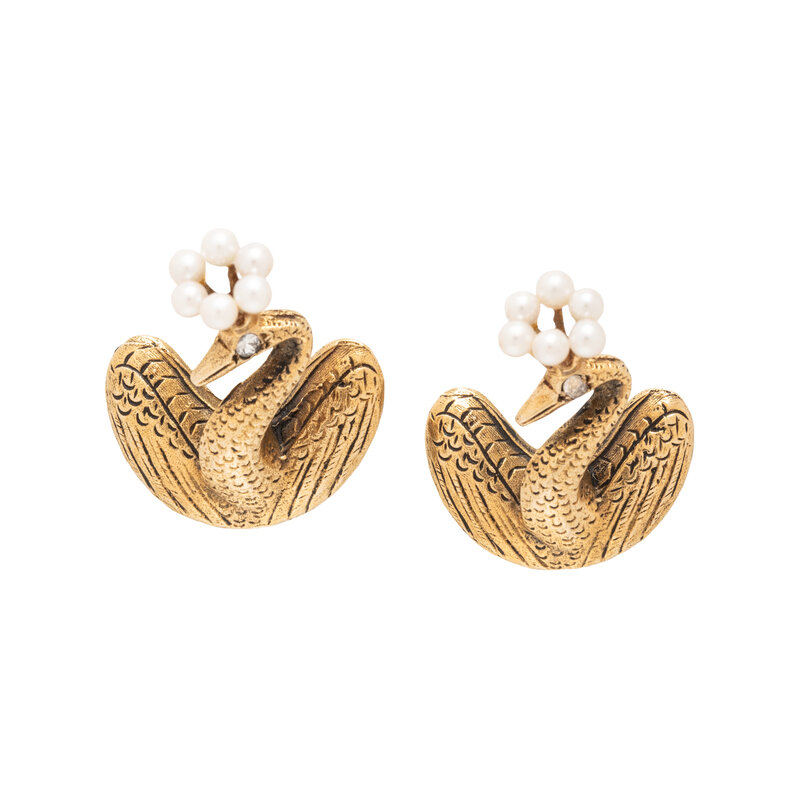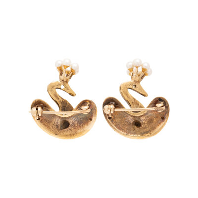PAIR OF YELLOW GOLD BIRD PINS