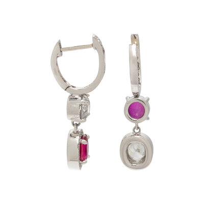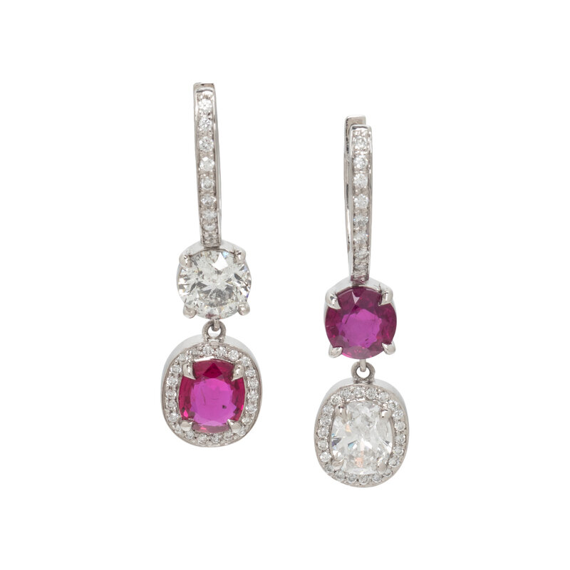 PLATINUM, RUBY, AND DIAMOND EARRINGS