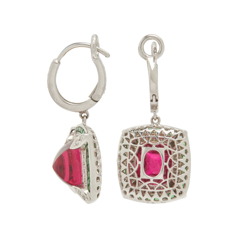TOURMALINE, TSAVORITE GARNET AND DIAMOND EARRINGS
