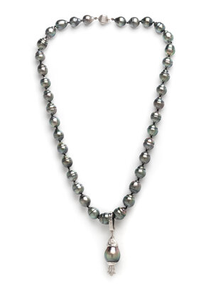 CULTURED TAHITIAN PEARL NECKLACE WITH PENDANT ENHANCER