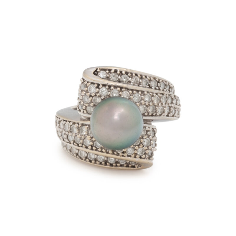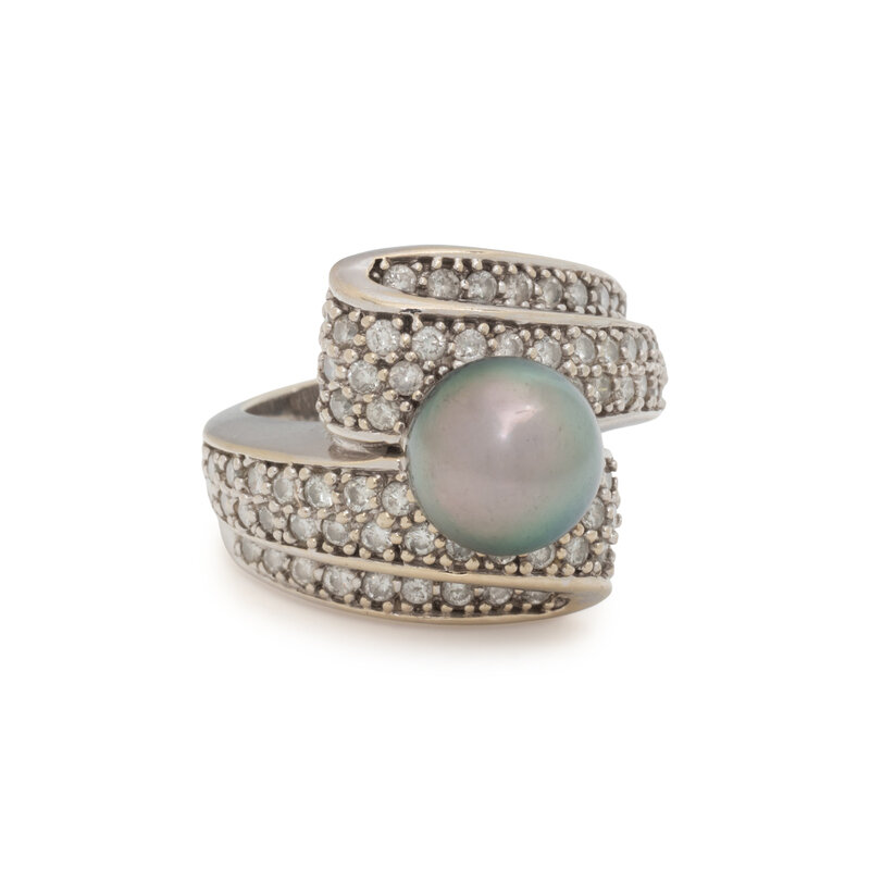 TAHITIAN CULTURED PEARL AND DIAMOND RING