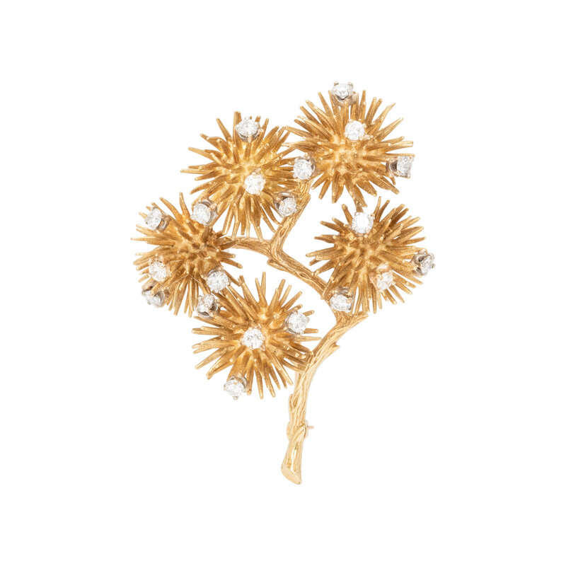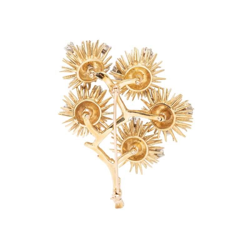 YELLOW GOLD AND DIAMOND ARTICULATED BROOCH