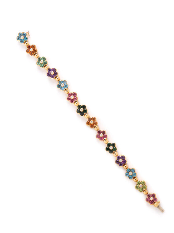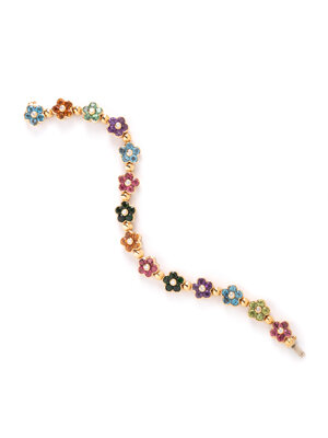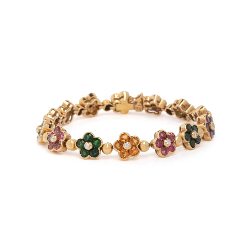 YELLOW GOLD, DIAMOND, AND MULTIGEM FLOWER BRACELET