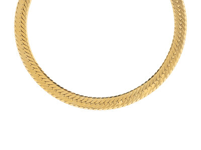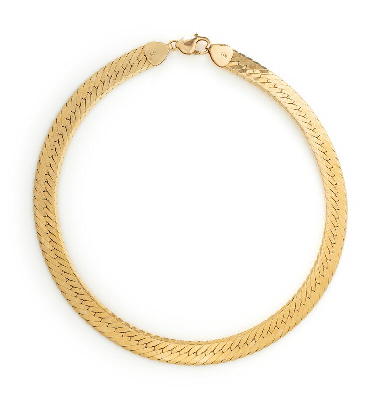 14 karat yellow gold. 15 3/4 inches long, 3/8 inch wide.