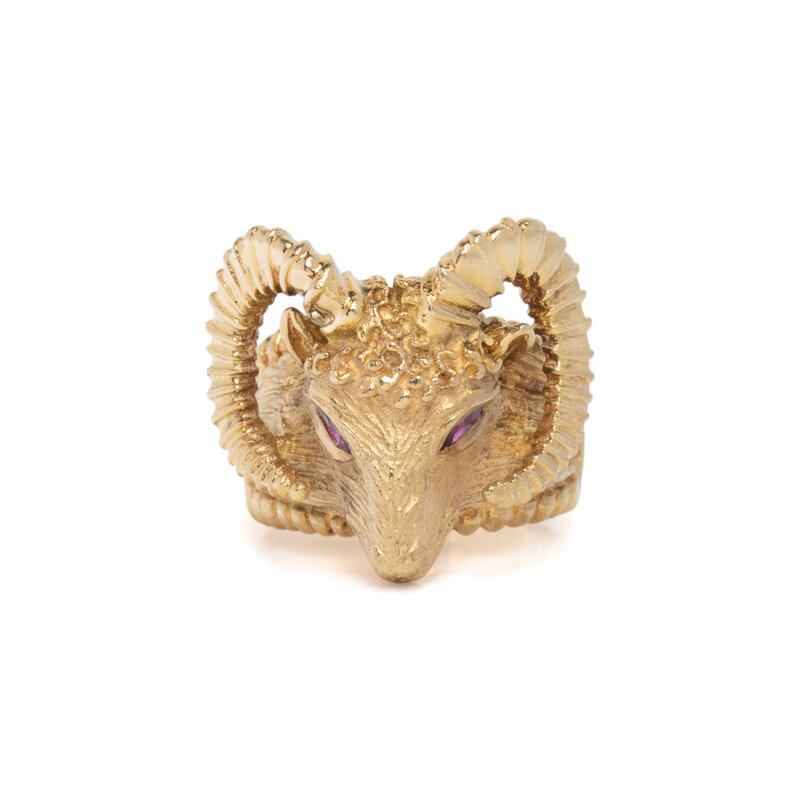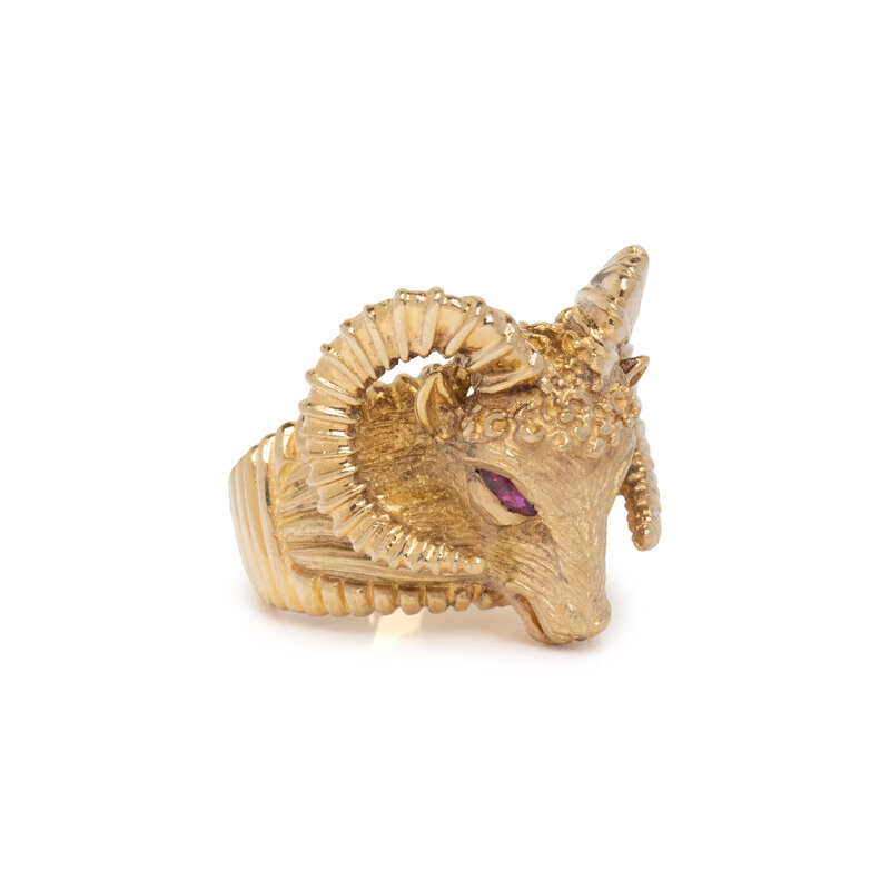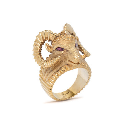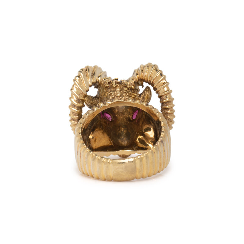 YELLOW GOLD AND RUBY RAM'S HEAD RING