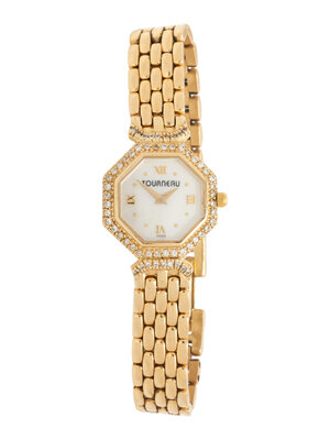 TOURNEAU, YELLOW GOLD, MOTHER-OF-PEARL, AND DIAMOND WATCH