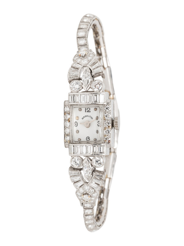 HAMILTON, PLATINUM AND DIAMOND WATCH