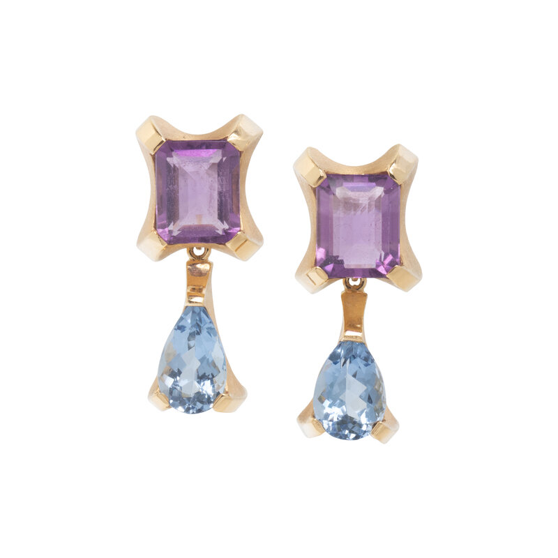 YELLOW GOLD, AMETHYST, AND AQUAMARINE CONVERTIBLE EARRINGS