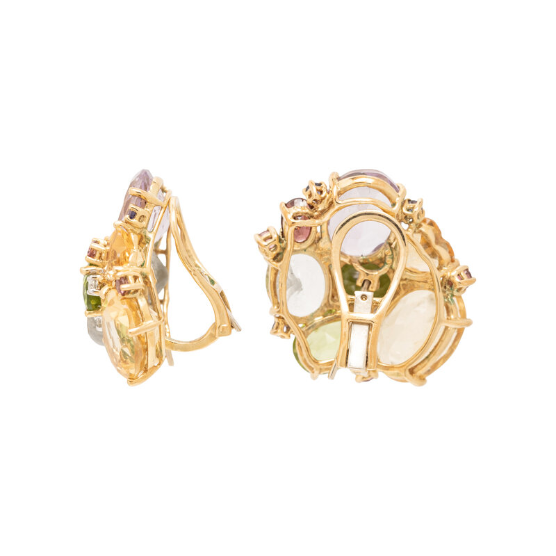 MULTIGEM AND DIAMOND CLIP EARRINGS