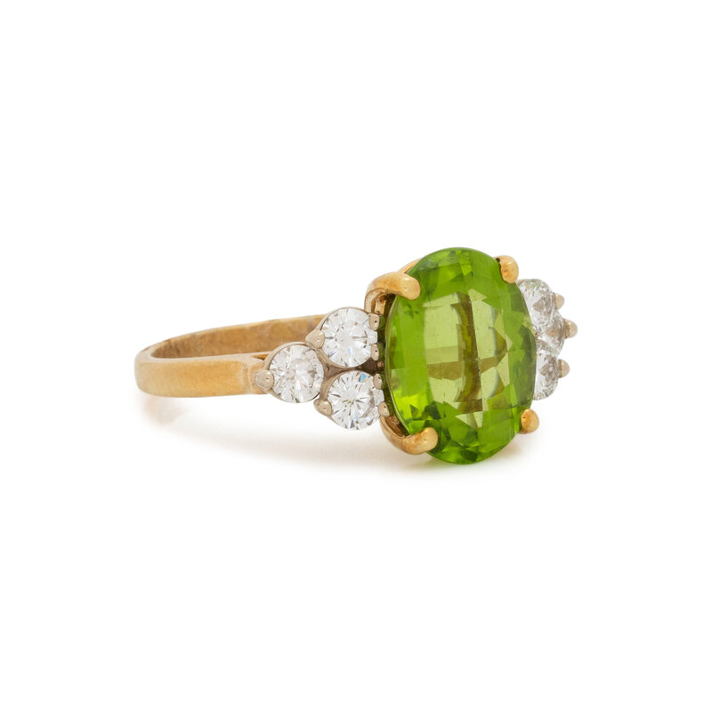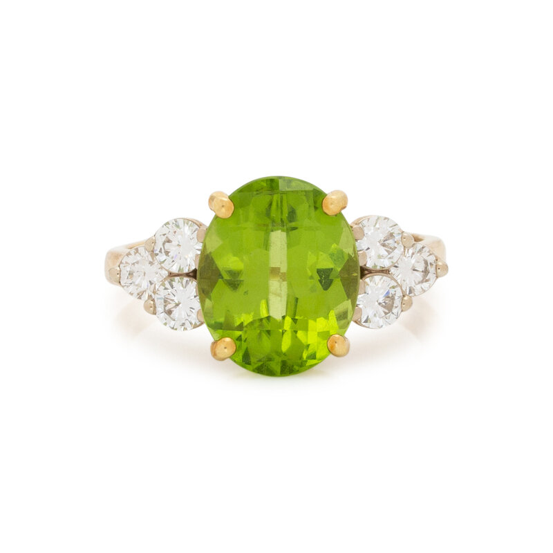 YELLOW GOLD, PERIDOT, AND DIAMOND RING