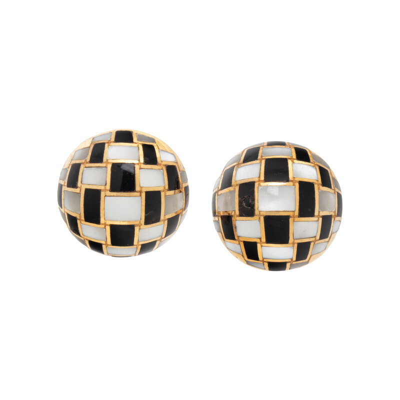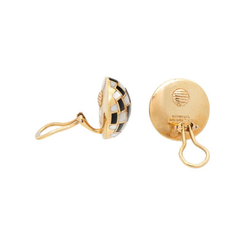 TIFFANY & CO., ONYX AND MOTHER-OF-PEARL CLIP EARRINGS